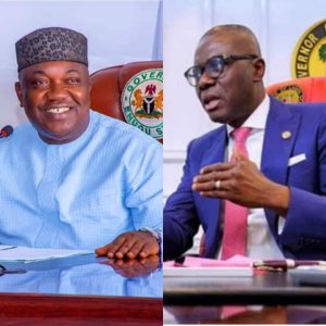 L-R: Governor, Enugu State, Hon. Ifeanyi Ugwuanyi and Governor, Lagos State, Mr. Babajide Sanwo-Olu