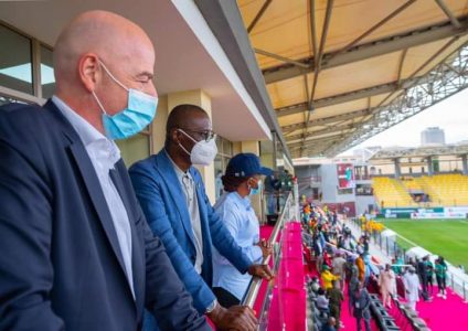 President of Confederation of African Football (CAF), Mr. Patrice Motsepe, Minister of Youth and Sports Development, Mr. Sunday Dare, Nigerian Football Federation (NFF) President, Amaju Pinnick, and top FIFA officials joined in Infantino’s entourage to the stadium.