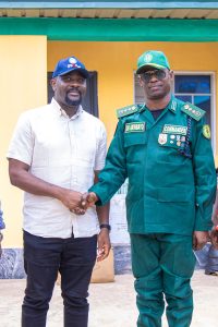L-R: Senator representing Enugu West Senatorial District, Senator Osita Ngwu in a warm handshake with the Commander, Enugu State Forest Guard, Dr. Akinbayo Olasunkanmi Olasoji