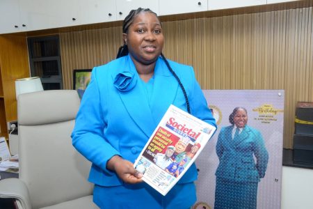 Managing Director, Executive Trainers Ltd, Dr. Mrs. Ajoke Ogunsan displaying the Societal Concerns Magazine…