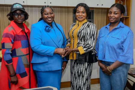 Managing Director, Executive Trainers Ltd, Dr. Mrs. Ajoke Ogunsan (2nd left); Publisher, Societal Concerns Magazine, Amb. Oluwayomi Oluwapelumi (2nd right) with her team during the courtesy visit of Societal Concerns Team to Dr. Mrs. Ogunsan…
