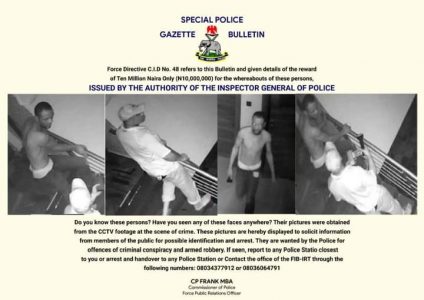 Further expressed that, “Also as indicated below 10million Naira reward for information that leads to their Arrest. Phone numbers to call are shown below, ” the statement noted.