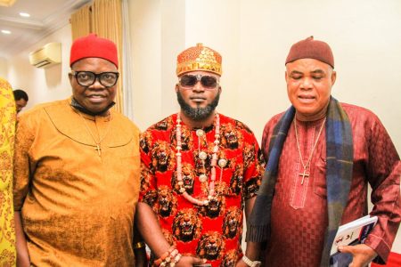 L-R: HRH. Hon. Igwe Ama Kelvin Etonihu, Oputa Obie with Popular International Business Consultant and Entrepreneur, Mr. Poly Chinenye Ezumoha (PolySamez) at the Doable 2023 Critical Stakeholders Canvass in Lagos
