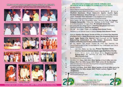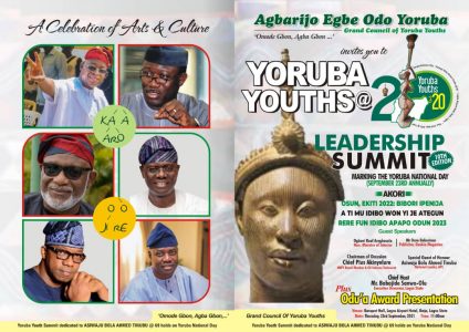 Every arrangement has now been concluded to celebrate the 2 decades of its existence as well as Yoruba National Day in grand style with our 10th Yoruba Youth Leadership Summit which will also feature Ijala, Ekun Iyawo, Rara, Ewi, Qiuz, and Dancing Competitions during the 3 separate Interludes.